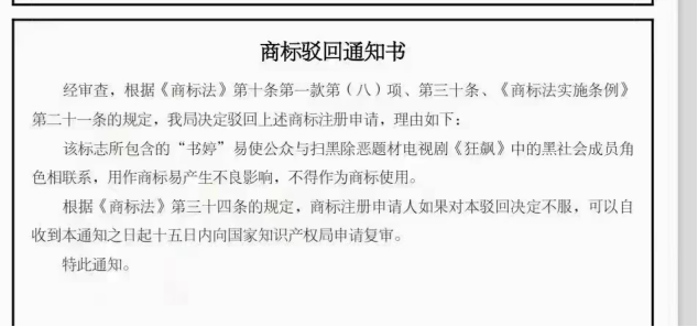 前有“高啟強”、“老默”,后“書婷”商標也被駁回