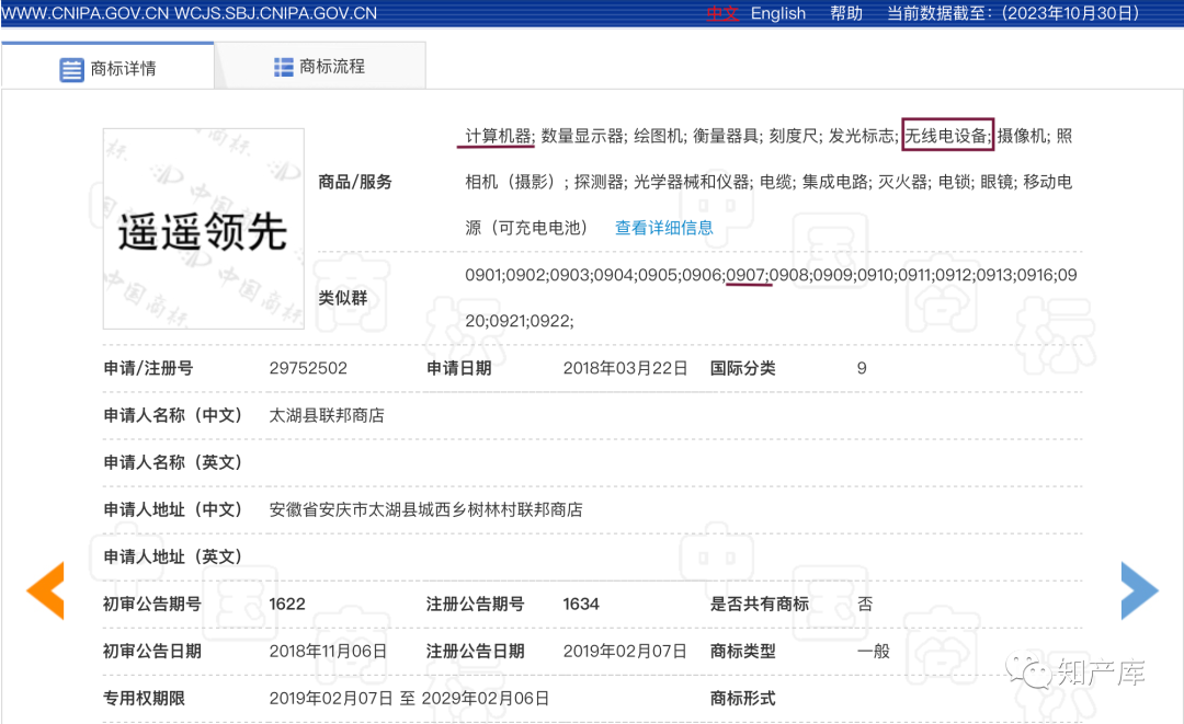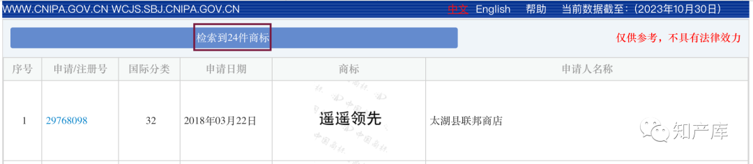 真正已核準(zhǔn)注冊(cè)的“遙遙領(lǐng)先”商標(biāo)只有三十件。
