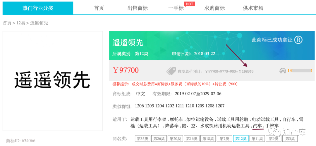 裸標(biāo)¥97700,但成交費(fèi)用=商標(biāo)款¥97700+服務(wù)費(fèi)¥9770(商標(biāo)款的10%)+轉(zhuǎn)讓費(fèi) (900)=10萬+
